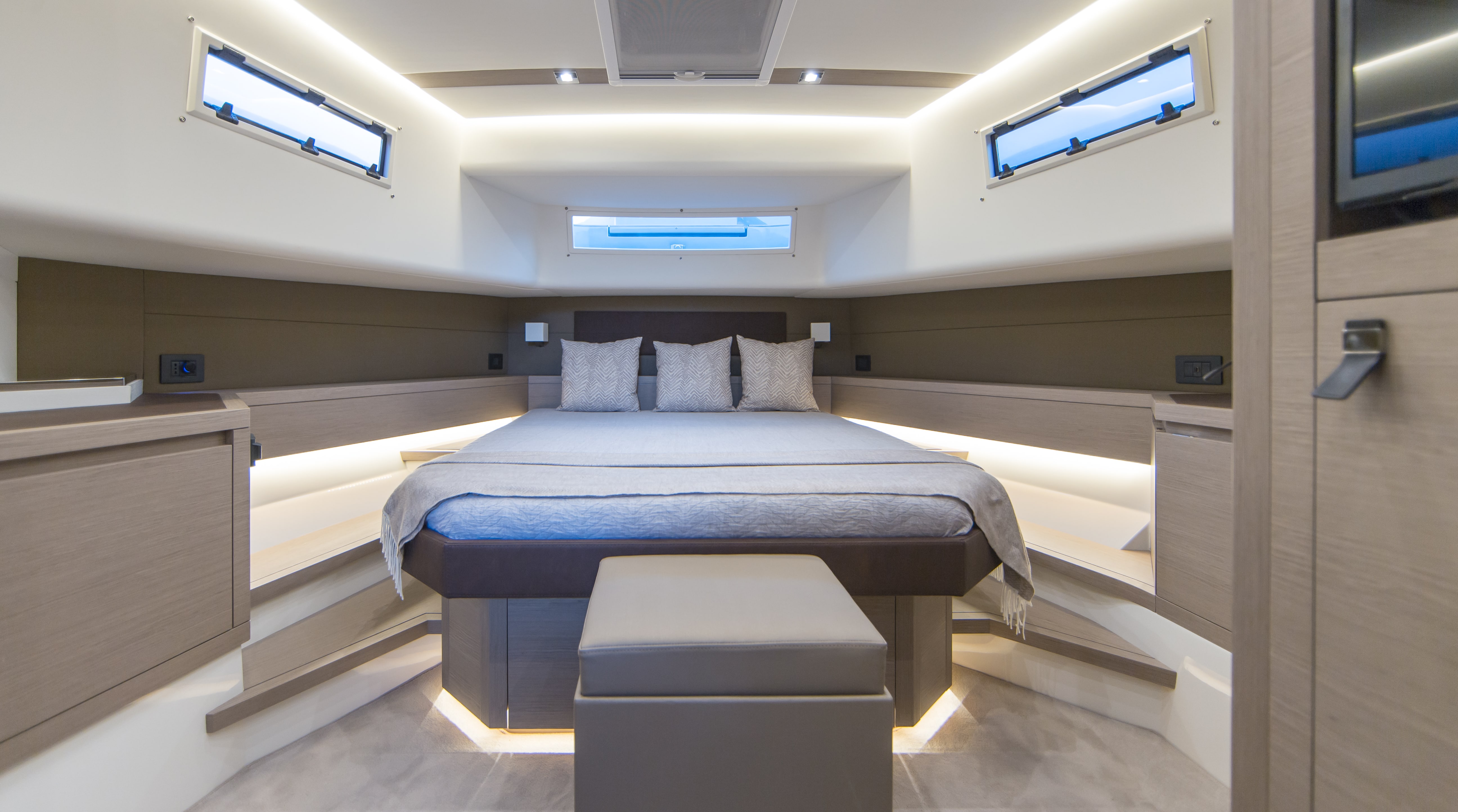 INSIDE: YOU WILL FIND A LARGE OWNER'S CABIN WITH DOUBLE BED AND A SECOND CABIN WITH TWIN BEDS AS WELL AS TWO SHOWER ROOMS. THE CABIN IS VERY SPACIOUS. THE PARDO YACHT 50 ALSO BENEFITS FROM A THIRD CABIN FOR THE BOAT’S CAPTAIN.
