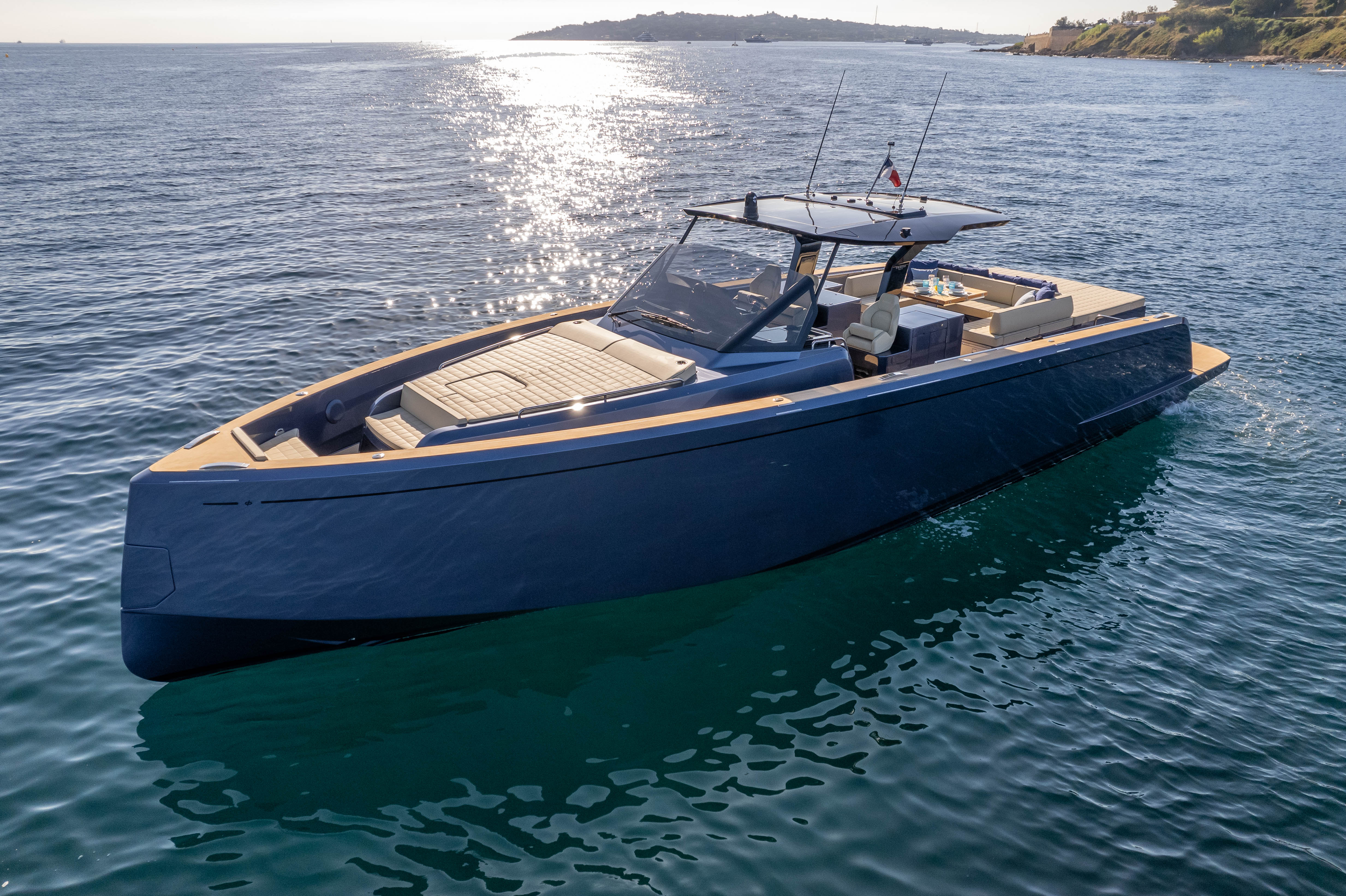 ELEGANT, COMFORTABLE AND WELL FITTED, IT IS THE IDEAL BOAT TO DISCOVER ALL THE COVES IN OUR REGION BETWEEN MONACO AND THE ISLANDS OF PORQUEROLLES.